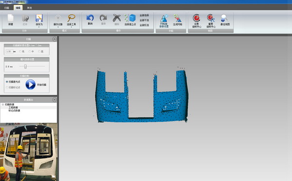 以全局攝影測量系統獲得的標記點數據為整體基準,輻射到個別掃描區域,掃描汽車整車以及部分拆解后的零件,獲取其三維數據。